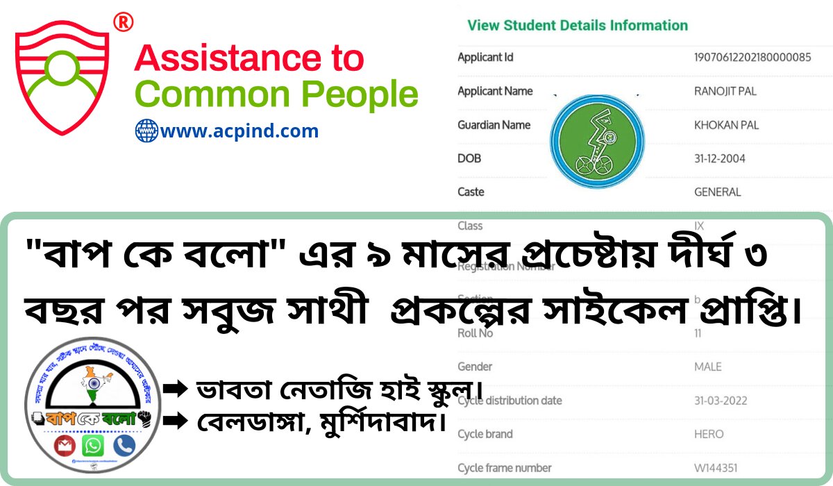 "বাপ কে বলো" এর প্রচেষ্টায় দীর্ঘ 3 বছর পর সবুজ সাথী প্রকল্পের সাইকেল প্রাপ্তি।